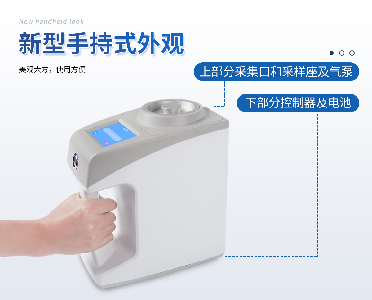 ●新型手持式外觀,美觀大方,使用方便。 ●彩色觸屏控制,操作更加**快捷。 ●LCD顯示采樣量,采樣時間等參數(shù)。 ●可將采樣量,采樣時間等參數(shù)按組儲存。 ●更換培養(yǎng)皿簡便,拿下采樣口即可更換培養(yǎng)皿。 ●帶熱敏打印機,方便打印數(shù)據(jù)。 ●帶上位機軟件,數(shù)據(jù)可導出電腦,方便歷史分析。 ●交直流兩用,內置6000mAh大容量鋰電池,可連續(xù)采樣8小時。 ●程序支持中文或英文。